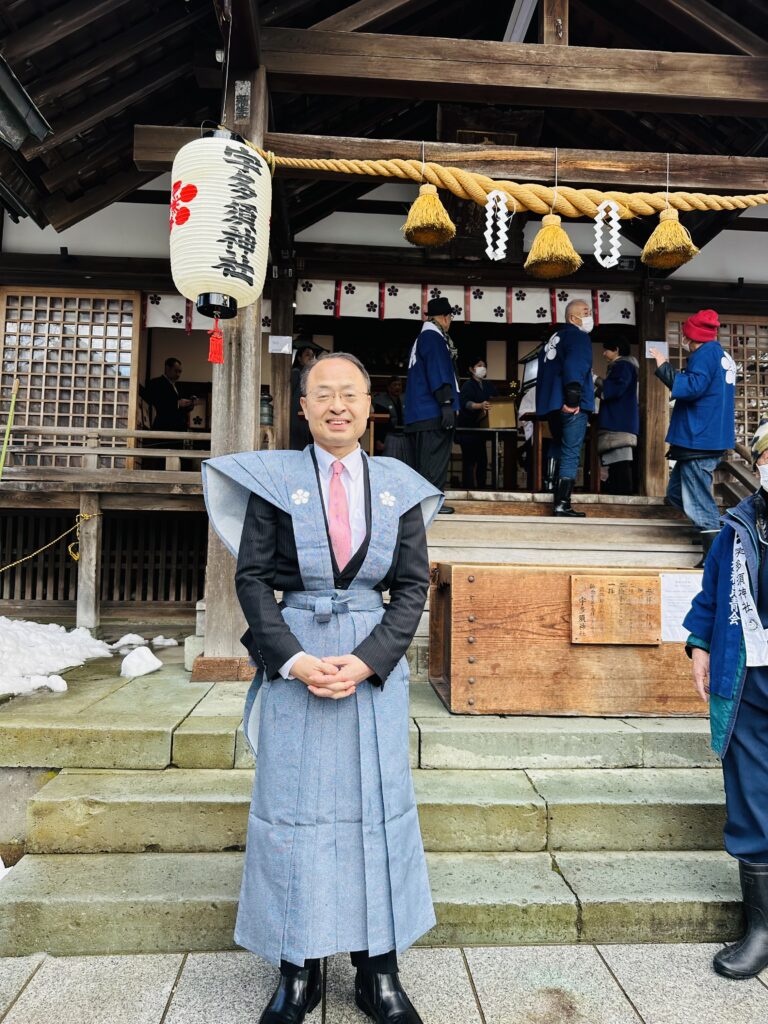 境内で裃(かみしも)姿の山野さんに遭遇!やはり素敵です✨多くの方から握手と写真撮影を求められる山野さん📸思わずカメラマンに徹します!